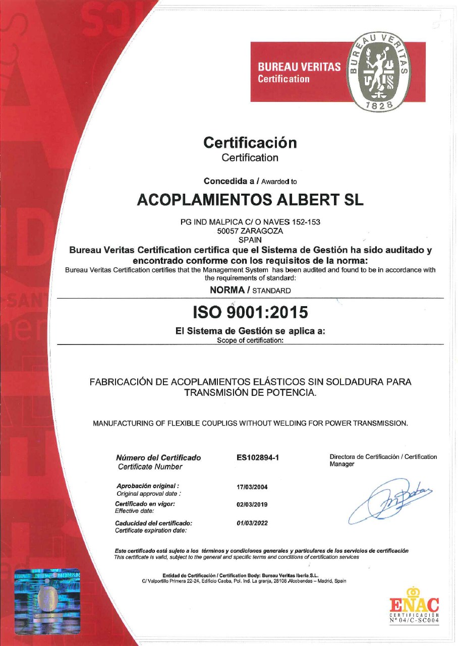 Design of the first coupling that solved the main problems in power transmission. Called the "Type A Coupling", it was a revolution in the Spanish market. That was when ACOPLAMIENTOS ALBERT was born.1964SERIES PRODUCTION