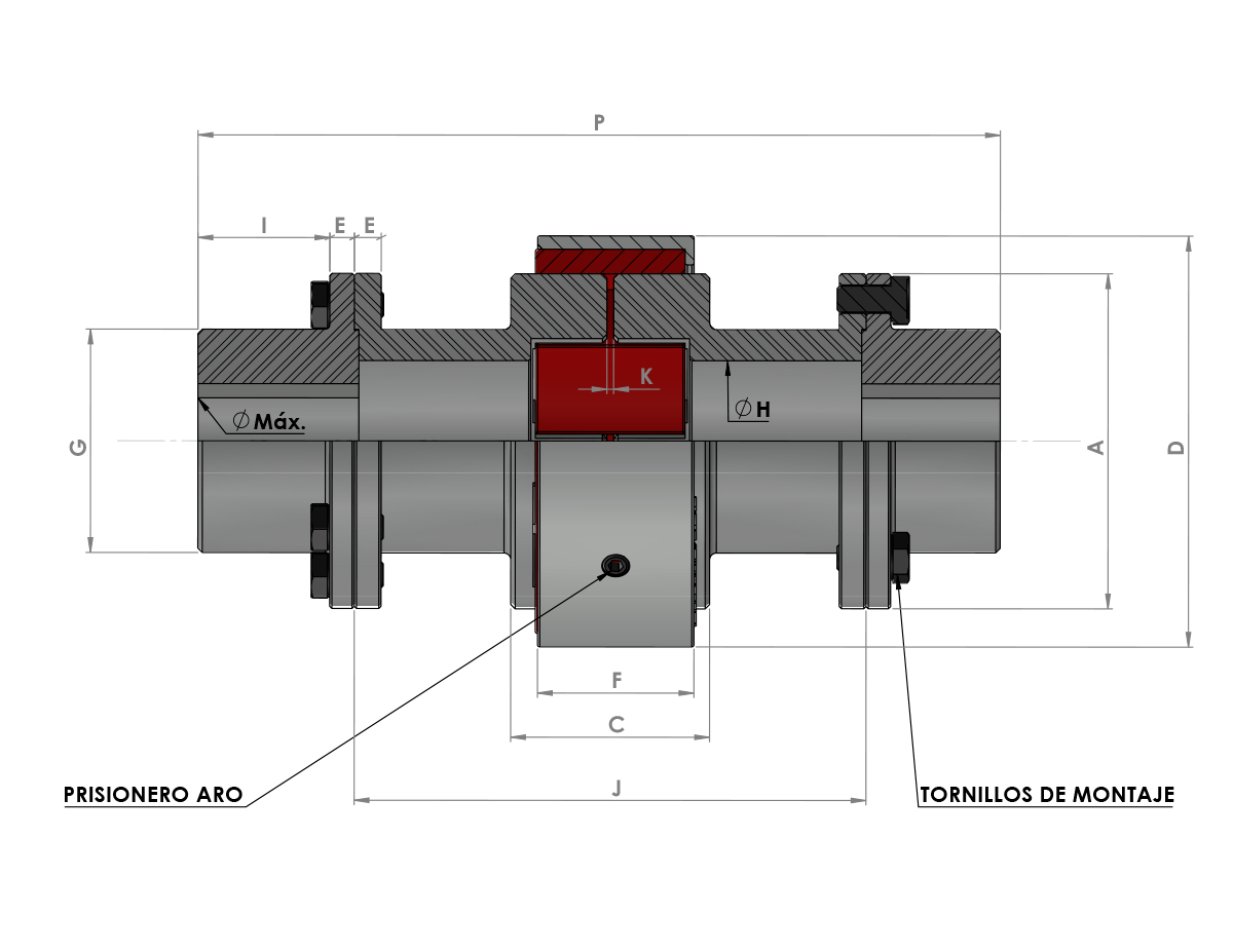 - Acoplamiento flexible a la torsión con distanciador para conectar ejes con separaciones grandes