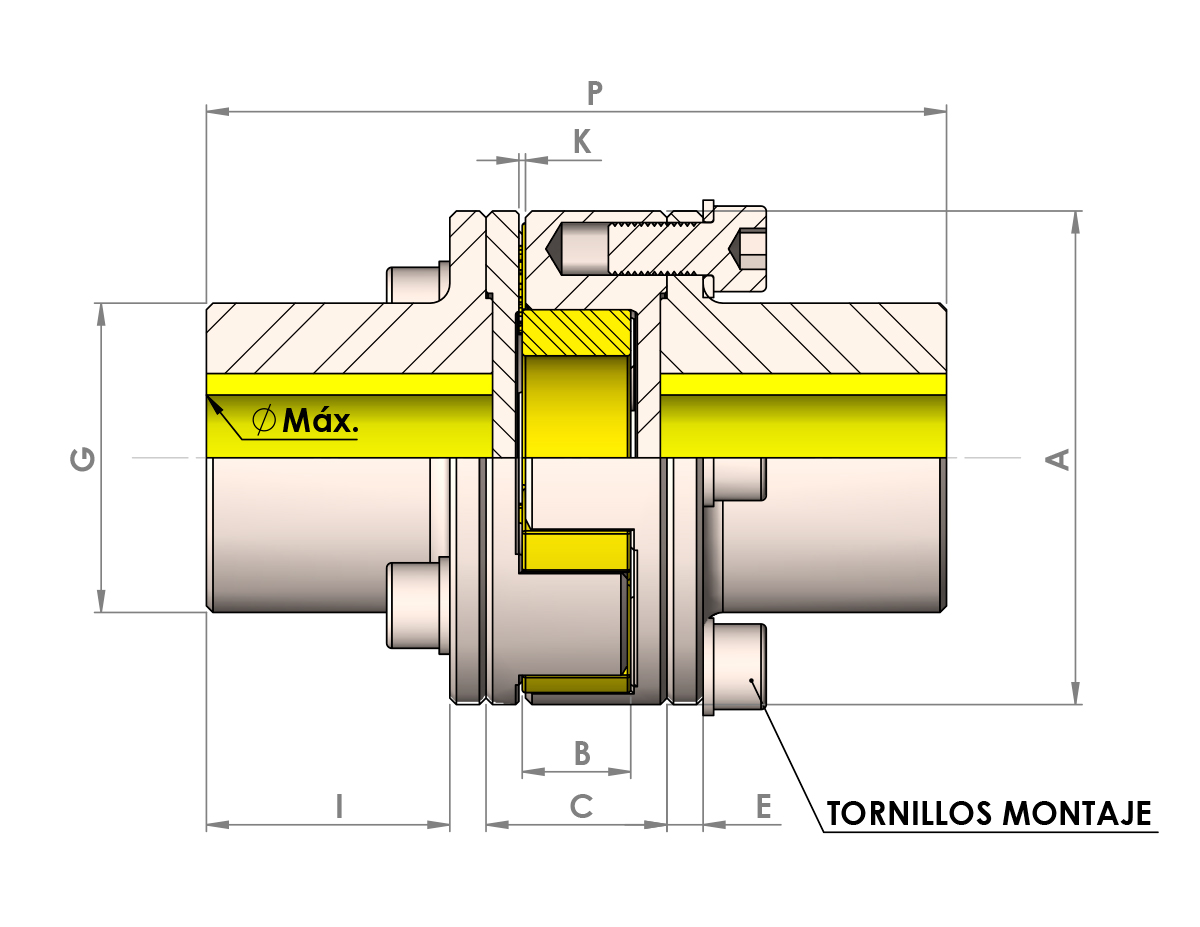 REFERENCIA ESTRELLA A x B MÁXIMO Ø EJES ESTRELLA 85º ShA ESTRELLA 90º ShA ESTRELLA 92º ShA ESTRELLA 96º ShA ESTRELLA 98º ShA ESTRELLA 64º ShD R.P.M MÁX P C G I E K Nº tornillos Par Apriete (Nm) PESO (kg)