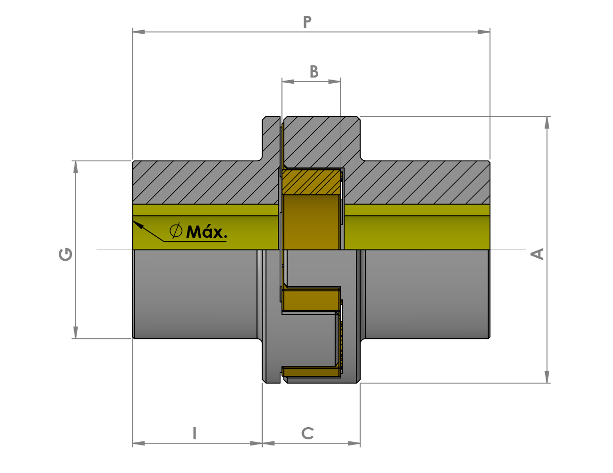 REFERENCIA | ESTRELLA A x B | MÁXIMO Ø EJES | ESTRELLA 85ºShA | ESTRELLA 85º-90ºShA | ESTRELLA 92º ShA | ESTRELLA 96º ShA | ESTRELLA 98º ShA | ESTRELLA 64º ShD | R.P.M MÁX | P | C | G | I | PESO (kg) | |