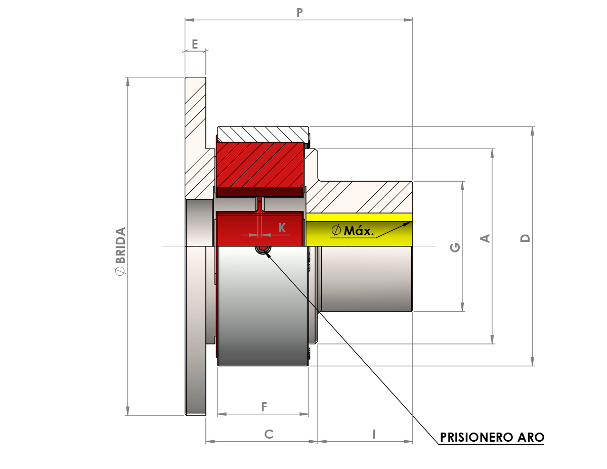 REFERENCIA | ESTRELLA A x B | MÁXIMO Ø EJES | ESTRELLA 92ºShA | MÁX R.P.M. | Ø Brida | P | D | A | G | I | E | K | Peso (kg) |
